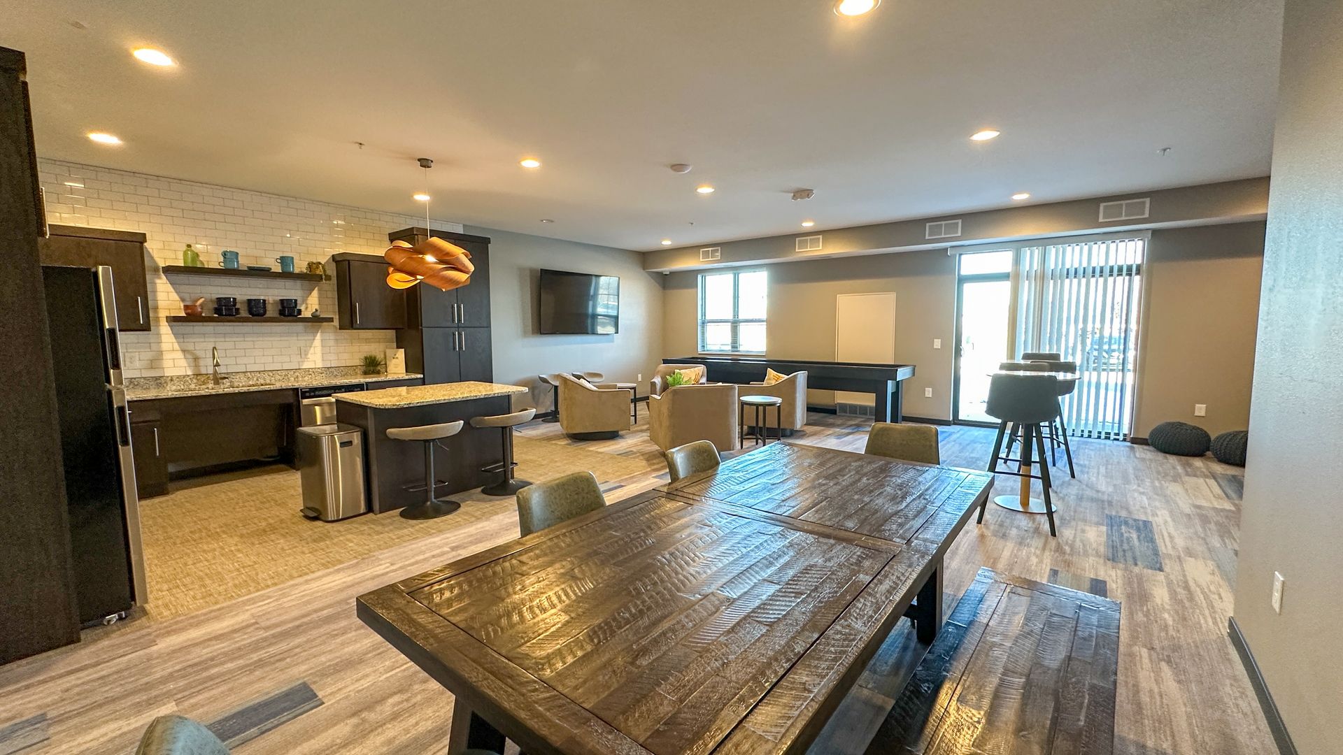 You’ll love the welcoming community room that includes a large TV for movies or sports, along with gaming and lounge seating. Our extensive park amenities including a covered picnic area, gas grills, large gas firepit, playground, and a dog run. Hurry up and reserve your new apartment while you still can!